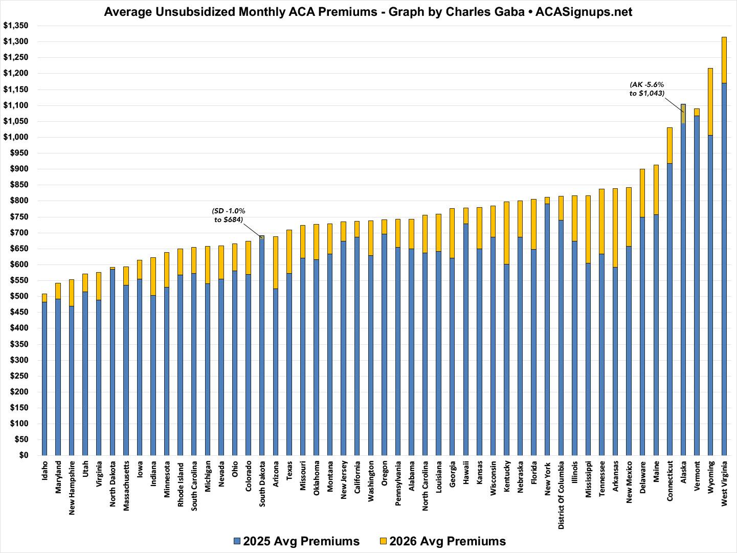 Nationally, the average unsubsidized premiums for 2026 exchange-based Open Enrollment Period enrollees are $741/month, up $122/month or 19.7% from last year.