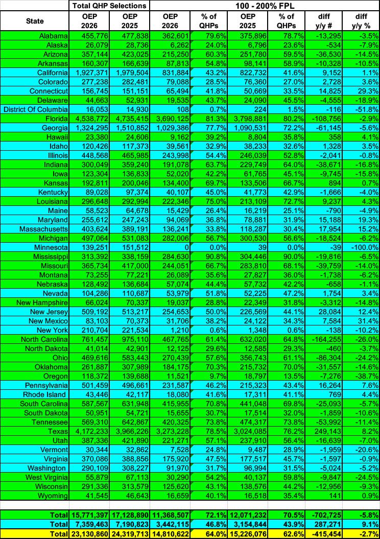 Unfortunately, only 9.85 million enrollees chose Silver this year...and even then, not all of them are in the 100 - 200% FPL range, which means there's quite a few who left hundreds or thousands of dollars in financial assistance for out of pocket costs on the table...except that with the enhanced federal tax credits having expired, many of these folks may have had no choice due to the increase in their premiums.