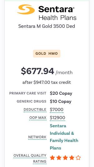 In this family's case, the lowest-priced Silver plan is from Sentara...and they aren't eligible for CSR help anyway. However, they do have one better alternative which is also from Sentara: A GOLD plan which actually costs less than the Silver plan would...and which has a lower deductible and MOOP as well!