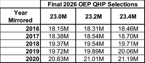 Well, it looks like plan selections are gonna end up being just a hair over 23.0 million in the end...which means average monthly effectuated enrollment for 2026 will likely end up somewhere between 18.2 - 20.8 million people...or anywhere from 1.6 - 4.2 million lower than it was last year.