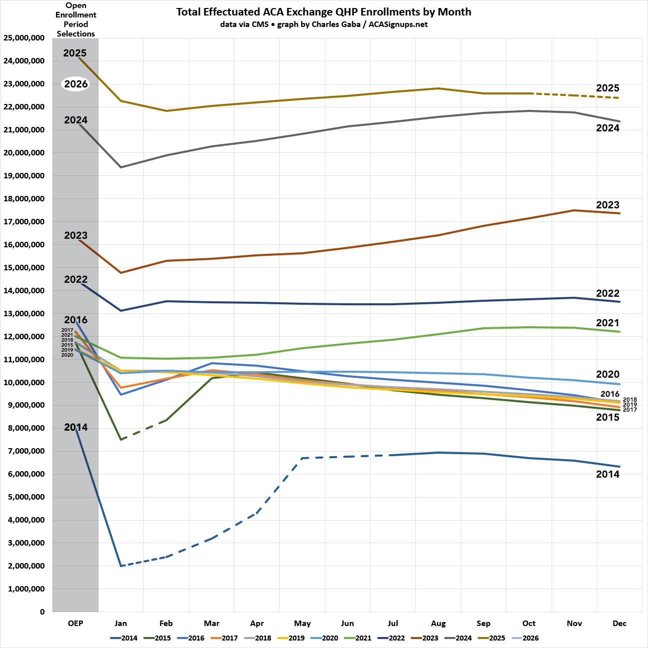 - AVERAGE MONTHLY effectuated enrollment data for the full year of 2026 won't be known until sometime in 2027.