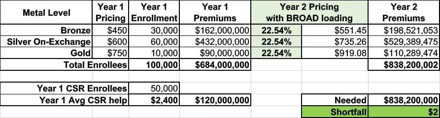Basically, they took the total amount ($120 million), divided that by 12 months ($10 million/month) and then divided that across their projected enrollment to figure out how much to tack onto each enrollee’s monthly premium to make up the difference.