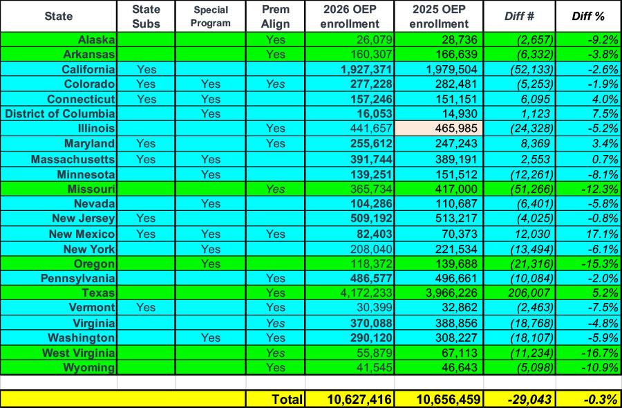 Having said all of that, here's what total 2026 OEP enrollment looks like broken out by these criteria: