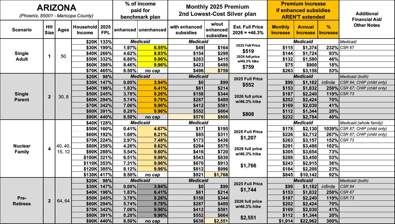 I decided to run the numbers myself to get an idea of just how much the combination of expiring IRA subsidies and the CMS "Affordability/Integrity Rule" will cause net premiums to increase starting in January 2026.