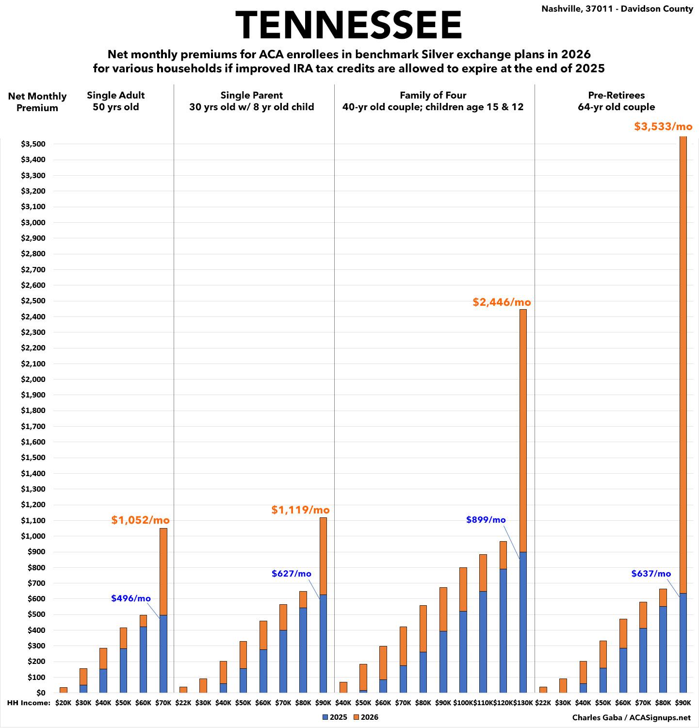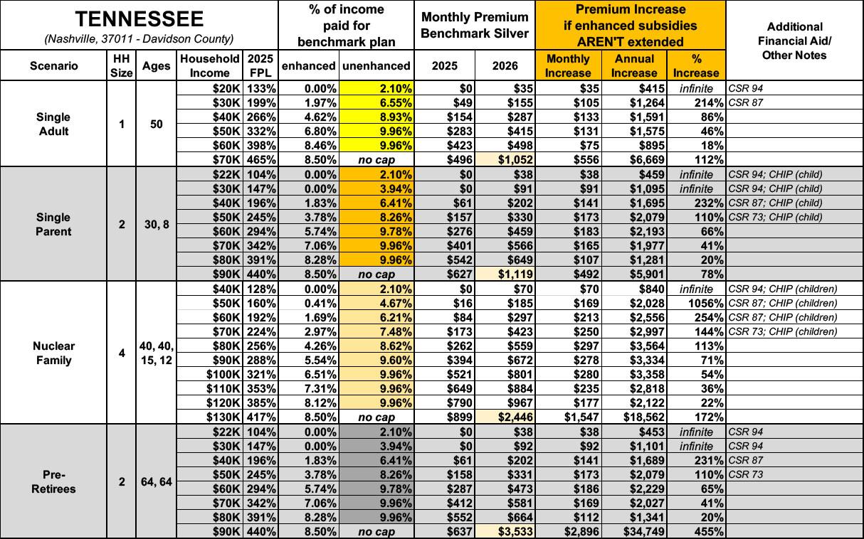 How much more will ~609,000 TENNESSEE residents pay if the improved #ACA subsidies expire? (updated)